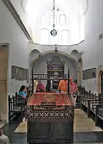 According to legend, the Yochanan ben Zakai Synagogue (Hebrew: בית הכנסת יוחנן בן זכאי), also known as Kahal Kadosh Gadol, is believed to stand on the spot of the Beit Midrash of the tanna Rabban Yochanan ben Zakai,[5] who established the Sanhedrin in Yavneh after the destruction of the Second Temple. The current building was constructed at the beginning of the 17th century, and by 1947, it was the largest synagogue of the Sephardic community in Jerusalem.[6] Since the end of the 19th century, it has served as the site of the Sephardic Chief Rabbi's installation.[7]