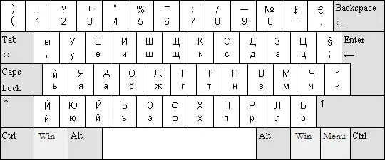Standard Cyrillic keyboard layout for Bulgarian in 2006 (Also known as ",УЕИШЩ" (,UEIShSht))