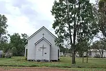 In 2002, local resident Ella Robinson petitioned the former Bendemere Shire Council to have Jackson State School's play shed, built in 1908, relocated from the former school site (which had laid dormant since the School's closure in 1983) to the centre of town at the old railway station site to serve as a Intercity Bus Stop (ICBS) for passengers travelling on Greyhound Australia's long-distance coach services.[12] In 2012, numerous information panels were installed in the old play shed illustrating the town's history and paying tribute to the pioneers who helped establish the rural community.[12] A crowd of 120 attended a ceremony on 10 November 2012 to see then - Federal Member for Maranoa Bruce Scott officially unveil the new panels in what is now known as Jackson's "Tribute to Pioneers".[12] Tourism bodies now mention The Old Play Shed in promotional material as one of the interesting sights to see in Jackson.[13]