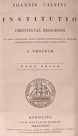 The title page from the 1834 edition of John Calvin's Institutio Christiane Religionis
