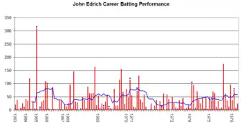 John Edrich's Test career performance graph