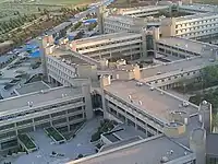 Named after the first king of modern Jordan, Abdullah I bin al-Hussein, the King Abdullah University Hospital (KAUH) is the largest hospital in northern Jordan, serving approximately one million inhabitants of the Irbid, Ajloun, Jerash, and Mafraq governorates. It is also the teaching hospital affiliated with Jordan University of Science and Technology, located within the campus adjacent to the university's Medical Faculties Complex.[8] The hospital is staffed with full-time physicians and surgeons who are faculty members of the JUST Faculty of Medicine, in addition to many others from the Ministry of Health, and the Royal Medical Services (RMS). The overall area of various hospital buildings is 95583m², in addition to a double story car park of 9000m² area. The hospital has a bed capacity of 683 which can be increased to 800 beds in an emergency situation.