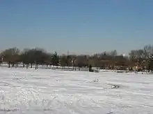 Juniper Valley Park in winter, facing west towards Manhattan.