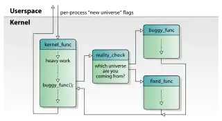 While applying hot patches, kGraft does not require a running kernel to be stopped for patched versions of functions to be introduced into it. Instead of replacing functions atomically, kGraft provides consistent "world views" (or "universes") to userspace processes, kernel threads and interrupt handlers, which are monitored during their execution so the original versions of patched kernel functions can continue to be used. To accomplish that, kGraft maintains original versions of patched functions in a read-copy-update (RCU) fashion, and dynamically selects between the original and patched versions depending on which process, kernel thread or interrupt handler executes them. More specifically, original versions of functions continue to be usedat the time when a hot patch is appliedfor processes currently executing within the kernel space, for kernel threads until they reach their completion points, and for currently executing interrupt handlers.[3][4][8][9]