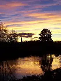 Lying on the River Soar, it is situated on the A6 near junction 24 of the M1 motorway and is also close to East Midlands Airport, the East Midlands Gateway freight terminal and East Midlands Parkway railway station. The village is served by a primary school that was rated good at its last Ofsted inspection,[3] and which takes children from ages 4 to 10 years and has both Anglican[4] and Baptist[5] churches. Beyond the primary school age, most children attend schools in Castle Donington and Shepshed. Shops in the village include a supermarket, butcher, pharmacy and optician.[6] There are a number of cafes, restaurants and takeaway food outlets including Fish & Chips, Indian and Chinese cuisine.[7] Kegworth has several public houses,[8] a doctor's surgery[9] and a village hall that hosts village events and the local playgroup.[10] Kegworth has thriving sports clubs, which include the Kegworth Imperial football club,[11] Kegworth Town Cricket Club[12] and Kegworth Bowls Club.[13] There are two parks with play areas for younger children and a skate park.[14] The village has a library[15] and a museum of local history.[16] One Kegworth community group also organise many village events throughout the year such as the Easter Charter market, Sideley Park family fun day and food festival, and the Christmas market.[17]