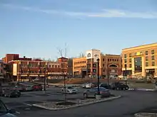 Beginning in 2008, several redevelopment projects in the downtown area, some of which had been discussed for decades, were put into motion and resulted in nearly $110 million (~$148 million in 2022) in total investment from public and private sources. The first of these was the Phoenix Project, a development privately financed by Kent resident Ron Burbick that renovated and expanded a section of commercial space along East Main Street.[28] Included in the project was construction of a pedestrian alleyway lined with small shops, eventually known as Acorn Alley, which opened in 2009. A second phase of Acorn Alley opened in late 2011.[29] Other aspects of the redevelopment, which include a 360-space parking deck and bus transfer station, a hotel and conference center, and three separate mixed-use buildings, began to take shape in 2010 following the demolition of several buildings in a four block area. New offices for Ametek and the Davey Tree Expert Company opened in late 2012 along with several new small businesses on the first floors of each building.[30] The hotel, operated by Kent State University, opened in June 2013 and the new parking garage, operated by the Portage Area Regional Transportation Authority (PARTA) opened April 30, 2013, as the Kent Central Gateway.[31] In addition to parking, the facility functions as PARTA's main bus transfer station and has storefronts on the ground level facing East Erie Street.[32][33] Included in the redevelopment was the purchase and renovation of the old Kent hotel, which first opened in 1920. After being mostly vacant since 1979 and completely vacant since 2000, it re-opened on April 1, 2013, as the new home to the Kent location of Buffalo Wild Wings and also houses offices, a wine and jazz bar, and apartments.[34] A five-story mixed-use building called The Landmark was completed in 2014 and construction started in November 2015 on an additional five-story mixed-use building featuring microapartments, scheduled to be completed in 2016.[35][36] The developments attracted the attention of The Plain Dealer and The New York Times and earned the city and university the 2013 Larry Abernathy Award from the International Town–Gown Association in recognition of the positive town–gown cooperation and collaboration.[37][38][39]