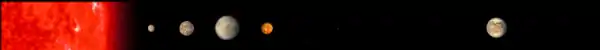The exoplanet is only slightly larger than Earth, with a radius 1.27–1.33 times that of Earth. Its mass is not known but it is likely to have a similar composition to Earth, giving it a mass of about 2.29–2.72 times the mass of the Earth. Kepler-186e orbits an M-dwarf star with about 4% of the Sun's luminosity with an orbital period of 22.4077 days and an orbital radius of about 0.11 times that of Earth's (compared to 0.39 AU for Mercury). The habitable zone for this system is estimated conservatively to extend over distances receiving from 88% to 25% of Earth's illumination (from 0.22 to 0.40 AU).[1]