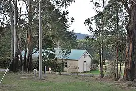 Kerrie /ˈkɛri/ is a locality in the Macedon Ranges region of Victoria, Australia, featuring a town hall (1934) and the closed Kerrie State School (c. 1877).[1] The school was closed in 1991, but was an important venue for community meetings and events until it was damaged by fire on the 16th October 2021.[2] The buildings and grounds are heritage listed[3] and underwent external restoration during 2009–2010. Nearby is the Hall, and the former tennis courts, which are now overgrown and in a state of disrepair.