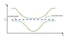 In solid-state physics, Kondo insulators (also referred as Kondo semiconductors and heavy fermion semiconductors) are understood as materials with strongly correlated electrons, that open up a narrow band gap (in the order of 10 meV) at low temperatures with the chemical potential lying in the gap, whereas in heavy fermion materials the chemical potential is located in the conduction band. The band gap opens up at low temperatures due to hybridization of localized electrons (mostly f-electrons) with conduction electrons, a correlation effect known as the Kondo effect. As a consequence, a transition from metallic behavior to insulating behavior is seen in resistivity measurements. The band gap could be either direct or indirect. Most studied Kondo insulators are FeSi, Ce3Bi4Pt3, SmB6, YbB12, and CeNiSn, although there are over a dozen known Kondo insulators.[1]