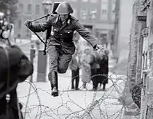 ![]() Schumann leaping over barbed wire into West Berlin on 15 August 1961. | |