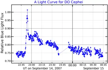 - ↑ Dal, H. A. (July 2020). "The flare cumulative frequencies of UV Ceti stars from different spectral types". Monthly Notices of the Royal Astronomical Society. 495 (4): 4529–4541. Bibcode:2020MNRAS.495.4529D. doi:10.1093/mnras/staa1484. Retrieved 6 December 2021.