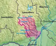 The Assomption River (in French Rivière l'Assomption, named after the Assumption of Mary) is the most important waterway in the Lanaudière region of Quebec, Canada. It is over 200 kilometres (120 mi) long, and has a drainage basin (watershed) of 4,220 square kilometres (1,630 sq mi). Its source is the Mont Tremblant massif. Seven significant rivers flow into the Assomption (de la Boule, Versailles, Noire, la Chaloupe, Ouareau, Saint-Esprit, and Achigan) before it flows into the Rivière des Prairies at Repentigny, Quebec.