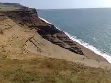 Ladder Chine is a geological feature on the south west coast of the Isle of Wight, England ( the Back of the Wight).[1][2] It is west of the village of Chale. It is a sandy coastal ravine, one of a number of such chines on the island created by stream erosion of soft Cretaceous rocks. It leads from the 190 foot high clifftop to a knickpoint approximately halfway down the cliff face above Chale Bay beach.