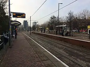 ![]() Ladywell tram stop in November 2018, looking towards the 'dive' under Ladywell roundabout. | |||||