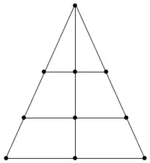 Leopard hunt games or simply leopard games are a group of abstract strategy games of Southeast Asian origin, similar in spirit to European fox games, although they are believed to have arisen independently.[1] The games are usually played on a triangular board with three horizontal parallel lines (including the triangle's base) intersecting the other two sides of the triangle and a vertical bisector. Though a number of variants exist, the basic principle of the game sees one player with a single piece (the hunter) and the other playing six or seven pieces (the hunted). Players move pieces in turn along the board's lines. The objective for the hunter is to capture the opponents pieces by "jumping" over them as in checkers while the hunted seeks to corner the hunter so that it has no possible move.