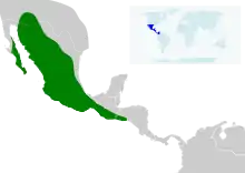 In the north, they reach southern California, Arizona and New Mexico. However, they are only found as summer migrants in the United States and, more generally, north of the mid-Sonora, arriving in these regions between April and July, and migrating south again in September.[2] Some individuals have been estimated to migrate as far as 1,600 kilometres (990 mi) each year.[6] Their migratory patterns have been shown to follow a path determined by seasonal availability of food plants, with cacti, Agave, and plants of the C3 metabolic pathway being strong predictors of distribution.[7] They are found year-round in the western and southern parts of Mexico, and along the east coast, and in Guatemala, El Salvador, and Honduras.[2]