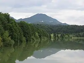 At 927 metres (3,041 ft),[9] the Jurko Lodge (Jurkova koča) stands below the peak, built in 1972 at the site of the previous structures.[10] It is named after Blaž Jurko (1859–1944), an early teacher and hiking pioneer that built the first hut on Lisca in 1902.[10] Next to it stands the Tonček Lodge (Tončkov dom), built in 1952 after the old one was burned during World War II by the Partisans. It was named after Tonček Čebular, the president of the Lisca Sevnica Mountaineering Club, who led the rebuilding.[11] Below the Tonček Lodge there is a chapel dedicated to the Mother of God,[12] built in 1939 at the initiative of Blaž Jurko.[13] Six names are written on plaques around its door: the nieces and nephews of the priest that consecrated it.[13]