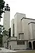 Baross Gábor telepi Jézus Szíve plébániatemplom 1933 modern Irsy László 1224 Budapest, Dózsa György út 96. The tower was built in 1948 according to the plans of Jenő Kismarthy-Lechner.