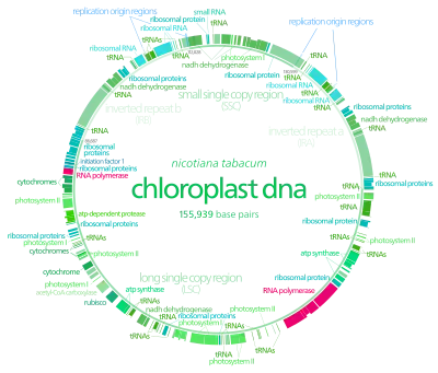- ↑ Shinozaki K, Ohme M, Tanaka M, Wakasugi T, Hayashida N, Matsubayashi T, Zaita N, Chunwongse J, Obokata J, Yamaguchi-Shinozaki K, Ohto C, Torazawa K, Meng BY, Sugita M, Deno H, Kamogashira T, Yamada K, Kusuda J, Takaiwa F, Kato A, Tohdoh N, Shimada H, Sugiura M (September 1986). "The complete nucleotide sequence of the tobacco chloroplast genome: its gene organization and expression". The EMBO Journal. 5 (9): 2043–2049. doi:10.1002/j.1460-2075.1986.tb04464.x. PMC 1167080. PMID 16453699.