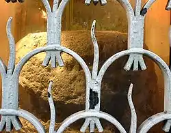 London Stone is a historic landmark housed at 111 Cannon Street in the City of London.[1] It is an irregular block of oolitic limestone measuring 53 × 43 × 30 cm (21 × 17 × 12"), the remnant of a once much larger object that had stood for many centuries on the south side of the street.