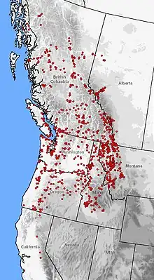 The 'eastern' subspecies (A. m. krausei) range is distributed throughout the interior mountains, with the western extent of its range encroaching into the low-land areas of the central interior plateau of Washington and British Columbia and the eastern extent of its range pushing through Rocky Mountain valleys into the lowland foothills and prairies of Montana and Alberta.[25][11]