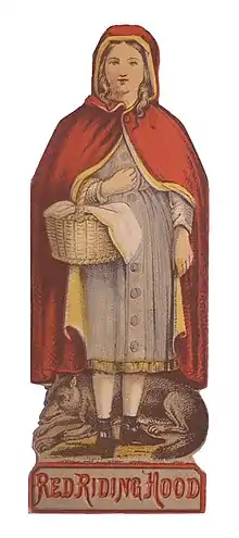 Cover of Lydia Very's verse version of Red Riding Hood (1863), one of a series of shaped die-cut books issued by Prang.