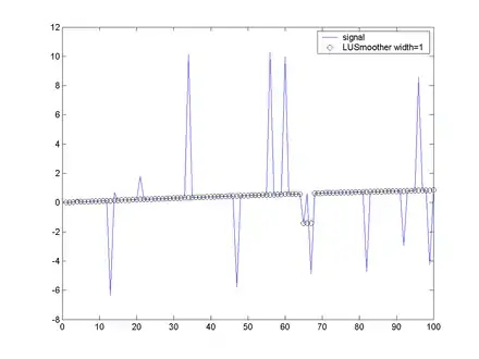 Conradie, WJ and de Wet, T. and Jankowitz, M. (2006). "Exact and asymptotic distributions of LULU smoothers". Journal of Computational and Applied Mathematics. 186 (1): 253–267. Bibcode:2006JCoAM.186..253C. doi:10.1016/j.cam.2005.03.073.