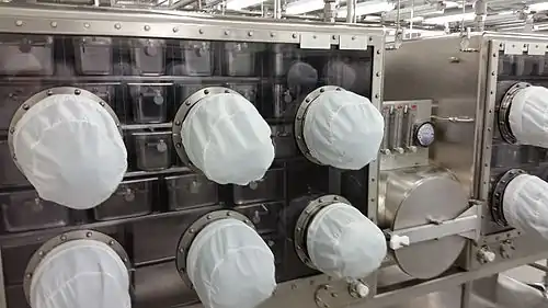 - Most samples are not handled directly. Researchers prepare samples in stainless steel cabinets through multi-layered gloves. The atmosphere in these cabinets is purged by high-purity nitrogen that is continuously monitored for oxygen and moisture contents. When research requires that a sample be exposed to contamination, the sample is kept separate from pristine samples after its return.[6]