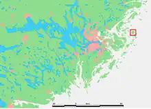 The nature of the Möja Archipelago reflects its location on the edge to the peripheral archipelago region. While traces of early human activities are plentiful, some areas are untouched barren cliffs and marshy grounds.[1] Möja is today a popular tourist destination visited year around by the steamship company Waxholmsbolaget as well as by private boaters touring the greater Stockholm archipelago.