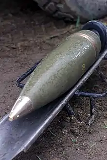 - ↑ Gander, Terry J. "Projectile, 155 mm: HE, M107". Jane’s Ammunition Handbook 2002-2003. Jane’s Information Group.