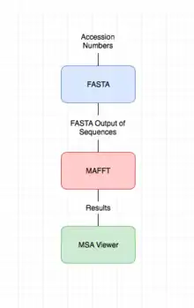 In bioinformatics, MAFFT (for multiple alignment using fast Fourier transform) is a program used to create multiple sequence alignments of amino acid or nucleotide sequences. Published in 2002, the first version of MAFFT used an algorithm based on progressive alignment, in which the sequences were clustered with the help of the fast Fourier transform.[2] Subsequent versions of MAFFT have added other algorithms and modes of operation,[3] including options for faster alignment of large numbers of sequences,[4] higher accuracy alignments,[5] alignment of non-coding RNA sequences,[6] and the addition of new sequences to existing alignments.[7]