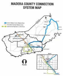 - 1 2 "Madera County Connection System Map" (PDF). County of Madera, California. Retrieved 15 November 2022.