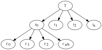 The above algorithm divides the problem into a number of subproblems recursively, each subproblem being of size n/b. Its solution tree has a node for each recursive call, with the children of that node being the other calls made from that call. The leaves of the tree are the base cases of the recursion, the subproblems (of size less than k) that do not recurse. The above example would have a child nodes at each non-leaf node. Each node does an amount of work that corresponds to the size of the subproblem n passed to that instance of the recursive call and given by . The total amount of work done by the entire algorithm is the sum of the work performed by all the nodes in the tree.
