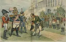 Quay and Harrison quickly came to differ about presidential appointments of federal officials. The president wanted to keep control of appointments and minimize the possibility of appointing corrupt people who might reflect badly on him; the state bosses had made promises during the campaign they needed to make good on or lose influence. The situation was made worse when the newspapers characterized each Pennsylvania appointment as either a victory for Quay or for Harrison, something that both men were aware of.[96] In one incident, Quay handed Harrison a list of people he and Cameron wanted appointed, and replied, when the president asked for their qualifications, that the senators from Pennsylvania vouched for them. Harrison refused to appoint without making investigations, saying he could not blindly delegate the power of appointment.[97] In another incident, Quay tried to discourage an office seeker by telling him the president likely would disregard a recommendation. The office seeker, incredulous, asked, "Doesn't he know that you elected him?" to which Quay replied, "No. Benny thinks God did it."[98]