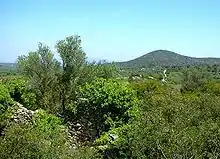 Merades, part of the northernmost section of the ruins. Coll de Vilallarga hill in the background
