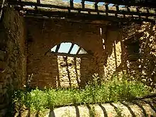 Inside one of the ruined buildings in Merades