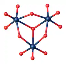 In chemistry, metatungstate refers to the anion with the formula [W12O40]8- and salts derived from this anion. The term also refers to protonated derivatives of this anion, including [H2W12O40]6-. The unprotonated anion [W12O40]12- has Td symmetry.[1]