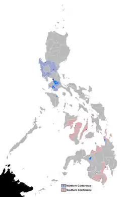 The MBA had a format similar to that of North America's National Basketball Association (NBA). The teams were divided into two conferences: the Northern Conference composed of Luzon-based teams, and the Southern Conference composed of Visayas- and Mindanao-based teams. The season concluded with the MBA National Finals, where the champions of both conferences face off to determine the season champions.