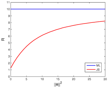 MSE of maximum likelihood estimator versus James–Stein estimator