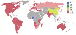 Countries and territories which sent delegates and results for Miss World 2001[14]