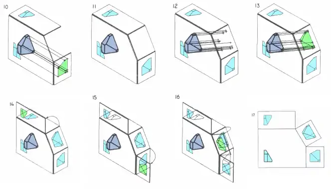 - Fig.14-16: The various planes of projection are unfolded to be planar with the Frontal plane of projection.