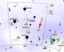 NGC 4103 is an open cluster in the constellation Crux. It was discovered by James Dunlop in 1826. It is located approximately 5,000 light years away from Earth, in the Carina-Sagittarius arm.[5]