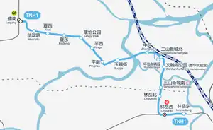 Nanhai Tram Line 1 (Chinese: 南海有轨电车1号线) is a light rail line in Nanhai District, Foshan. Construction started in January 2014.[3] The section from Leigang to Sanshanxinchengbei opened on August 18, 2021.[4]