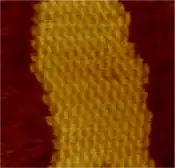 Small nucleic acid complexes can be equipped with sticky ends and combined into larger two-dimensional periodic lattices containing a specific tessellated pattern of the individual molecular tiles.[24] The earliest example of this used double-crossover (DX) complexes as the basic tiles, each containing four sticky ends designed with sequences that caused the DX units to combine into periodic two-dimensional flat sheets that are essentially rigid two-dimensional crystals of DNA.[30][31] Two-dimensional arrays have been made from other motifs as well, including the Holliday junction rhombus lattice,[32] and various DX-based arrays making use of a double-cohesion scheme.[33][34] The top two images at right show examples of tile-based periodic lattices.