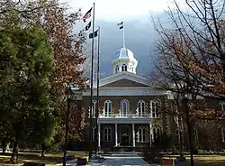 The Nevada State Capitol is the capitol building of the U.S. state of Nevada located in the state capital of Carson City at 101 North Carson Street. The building was constructed in the Neoclassical Italianate style between 1869 and 1871. It is listed in the National Register of Historic Places. It is also Nevada Historical Marker number 25.[2]