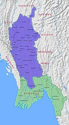 According to the chronicles, Tet Pya first gained notoriety in the interregnum period of the mid-1360s in what is now central Myanmar. The rival kingdoms of Sagaing and Pinya had fallen, and a Sagaing prince named Thado Minbya had founded a new polity called Ava, proclaiming it as the successor state of the two kingdoms.[3][4] Because several southern vassals of Pinya had refused to submit to the new regime, the new king was constantly on the road with his army to suppress the rebellions.[5][6]
