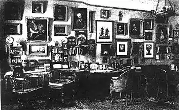 Nikolai Semyonovich Leskov was born on 4 February 1831, in Gorokhovo, Oryol Gubernia, to Semyon Dmitrievich Leskov (1789–1848), a respected criminal investigator and local court official, and Maria Petrovna Leskova (née Alferyeva; 1813–1886),[3] the daughter of an impoverished Moscow nobleman, who first met her future husband at a very young age, when he worked as a tutor in their house. Leskov's ancestors on his father's side were all clergymen in the village of Leska in Oryol Gubernia, hence the name Leskov. Semyon Dmitrievich was a well-educated man; friends referred to him as a "homegrown intellectual".[4][5] One of Nikolai's aunts on his mother's side was married to a rich Oryol landlord named Strakhov who owned the village of Gorokhovo ("a beautiful, wealthy and well-groomed estate... where the hosts lived in luxury," according to Leskov)[6] another was the wife of an Englishman, the chief steward for several local estates and a large trade company owner.[7] Leskov spent his first eight years in Gorokhovo, where his grandmother lived and where his mother was only an occasional guest. He acquired his early education in the house of Strakhov, who employed tutors from Germany and France for his own children.[1] As the German teacher started to praise Leskov for his gifts, his life became difficult, due to the jealousy of his hosts. At his grandmother's request, his father took Nikolai back to Oryol where he settled in the family house at 3 Dvoryanskaya Street.[3]