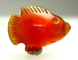An Egyptian New Kingdom amulet in the shape of a tilapia hieroglyph from circa 1350/1320 BC