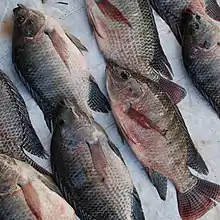 The Nile tilapia (Oreochromis niloticus) is a species of tilapia, a cichlid fish native to parts of Africa and the Levant, particularly Israel and Lebanon.[2] Numerous introduced populations exist outside its natural range.[1][3] It is also commercially known as mango fish (not to be confused with mango tilapia, or Sarotherodon galilaeus), nilotica, or boulti.[4]
