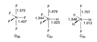 - ↑ Lewars, Errol G. (3 November 2008). "Nitrogen Pentafluoride and Related Compounds". Modeling marvels: computational anticipation of novel molecules. Springer. pp. 53–67. doi:10.1007/978-1-4020-6973-4_4. ISBN 978-1-4020-6972-7.